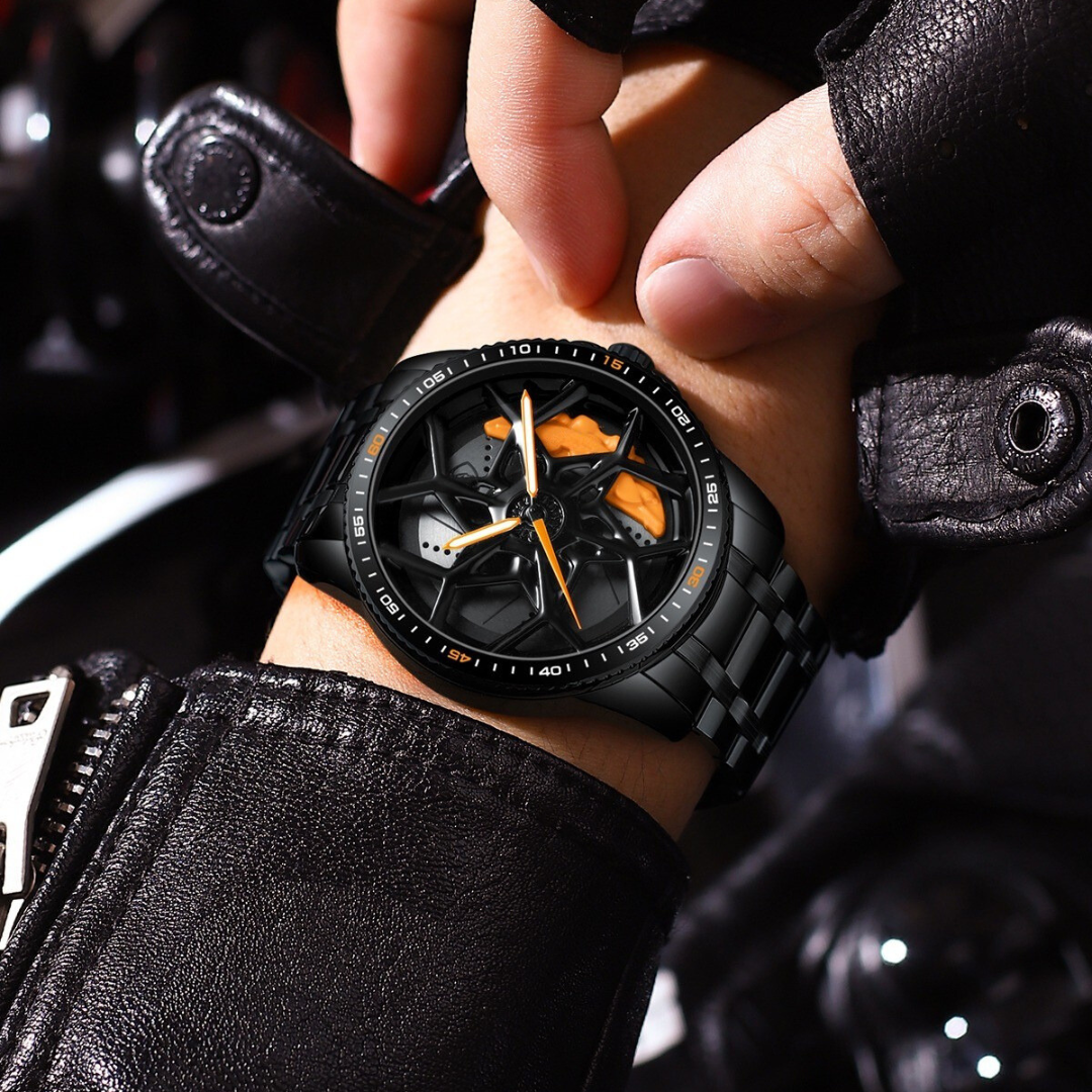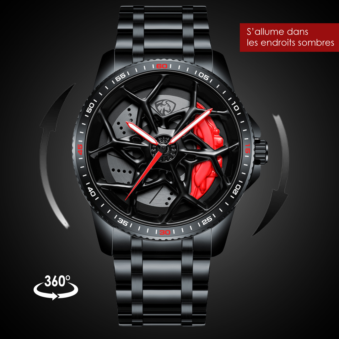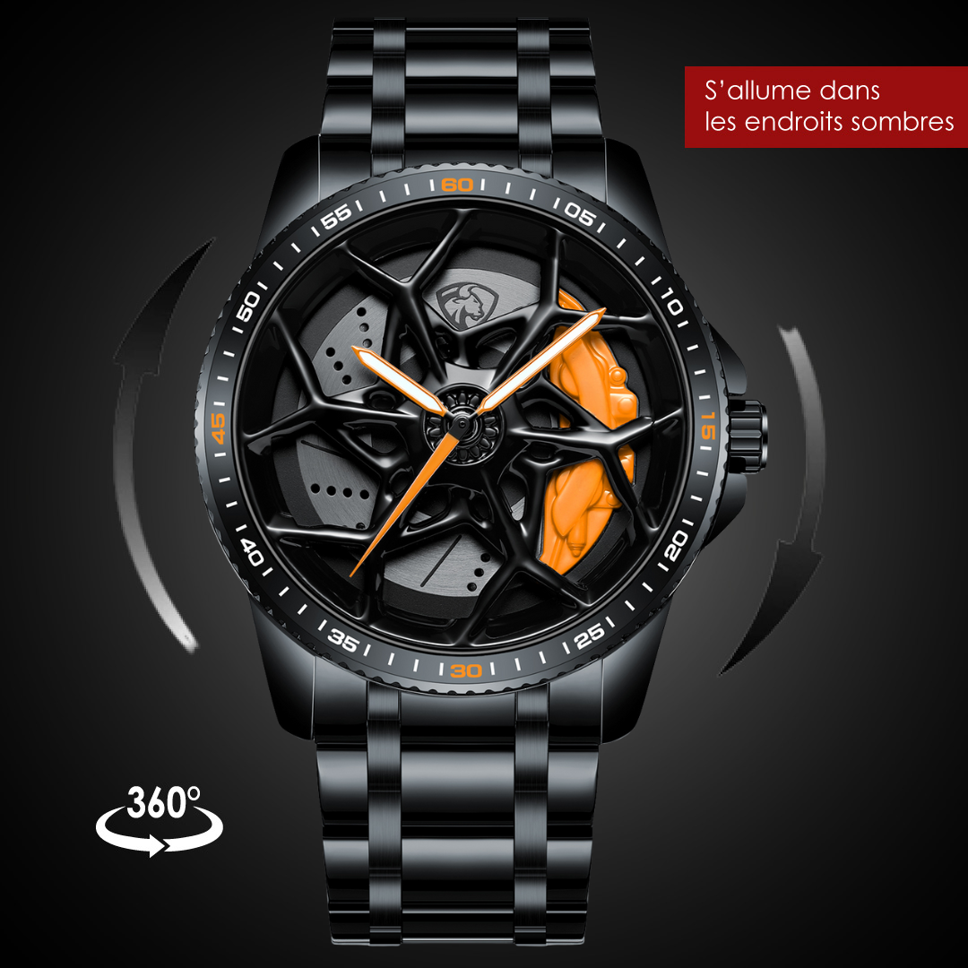 La montre Gt Kronos™ au design captivant fera battre le cœur de tous les amoureux du sport automobile. Elle mêle la perfection technique et le souci du détail pour créer un accessoire hors du commun. Cette montre utilisant la technologie de mouvement à quartz japonaise, est composée d'un verre minéral anti-rayures et d'un sous cadran représentant une jante de voiture sportive que vous saurez reconnaître.