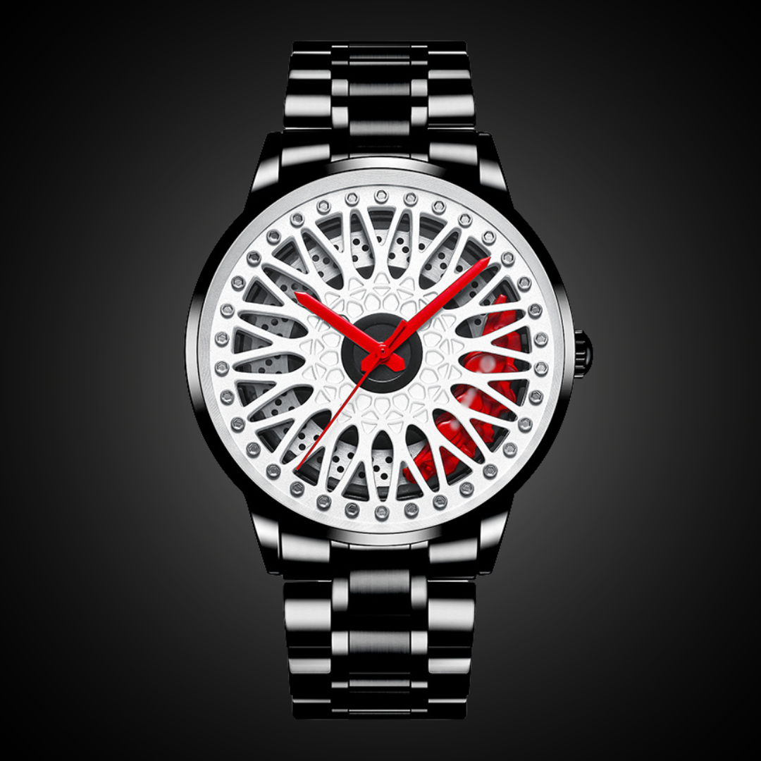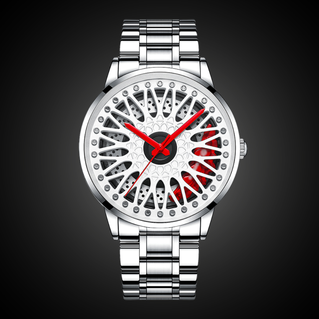 La montre Gt Kronos™ au design captivant fera battre le cœur de tous les amoureux du sport automobile. Elle mêle la perfection technique et le souci du détail pour créer un accessoire hors du commun. Cette montre utilisant la technologie de mouvement à quartz japonaise, est composée d'un verre minéral anti-rayures et d'un sous cadran représentant une jante de voiture sportive que vous saurez reconnaître.