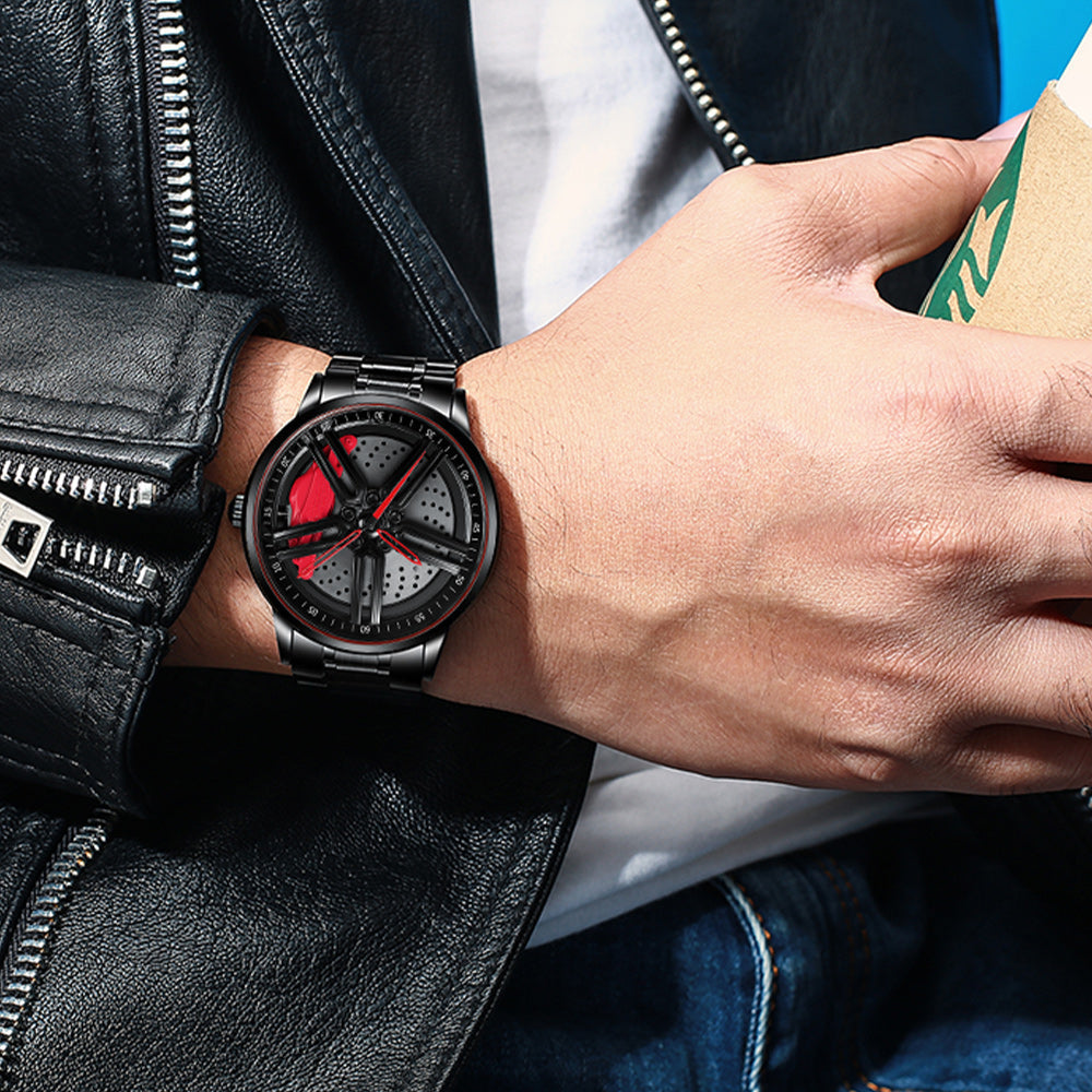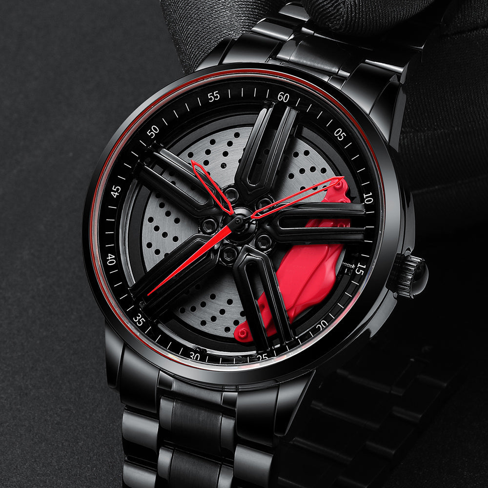 La montre Gt Kronos™ au design captivant fera battre le cœur de tous les amoureux du sport automobile. Elle mêle la perfection technique et le souci du détail pour créer un accessoire hors du commun. Cette montre utilisant la technologie de mouvement à quartz japonaise, est composée d'un verre minéral anti-rayures et d'un sous cadran représentant une jante de voiture sportive que vous saurez reconnaître.