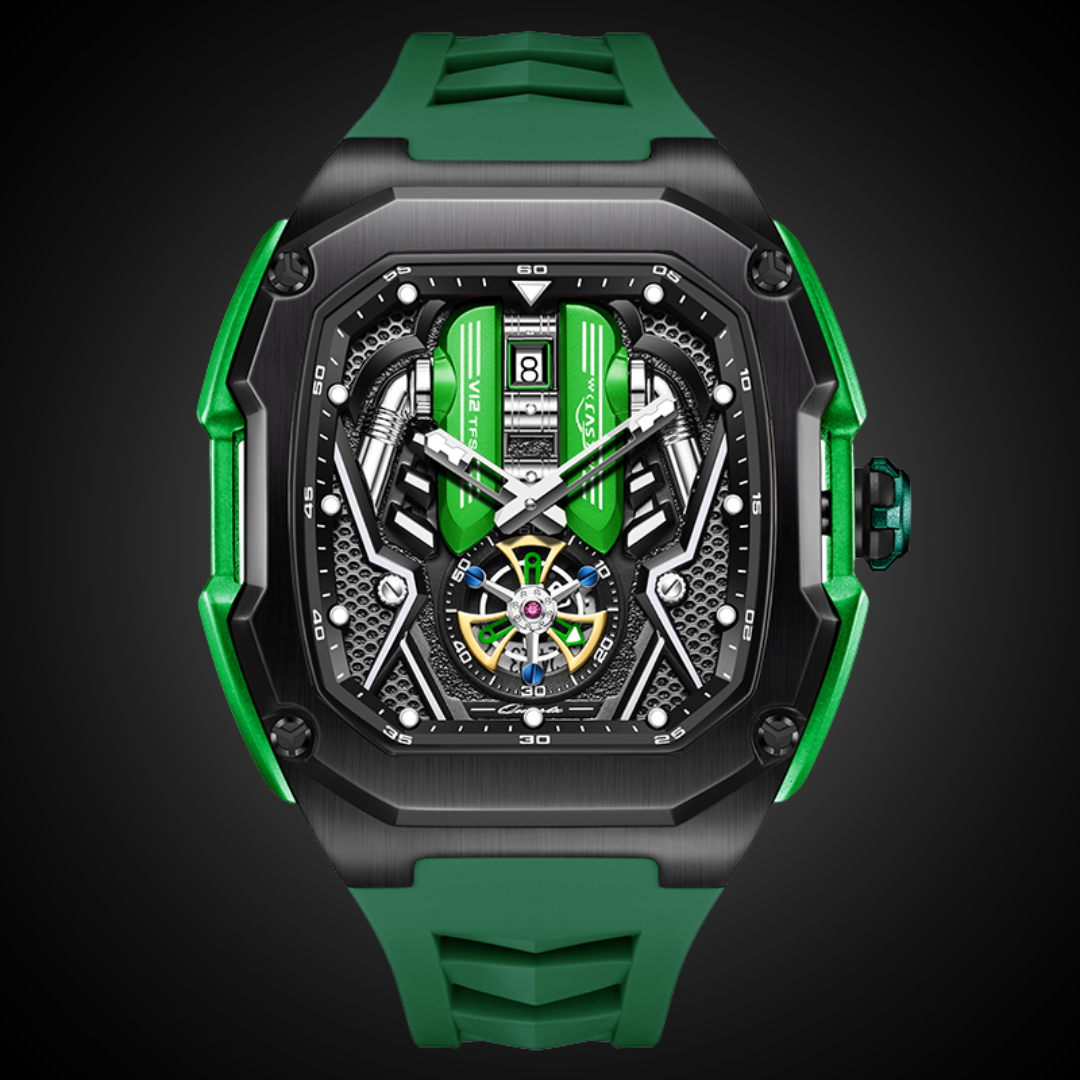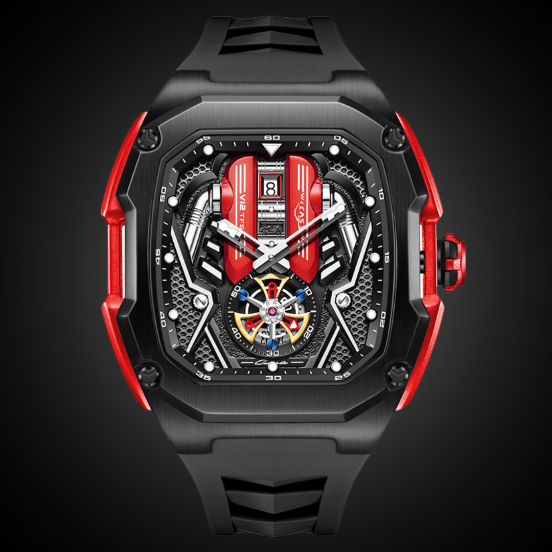 Cadran squelette, éléments V12 lumineux et marqueurs contrastés garantissent une lisibilité parfaite, jour comme nuit.