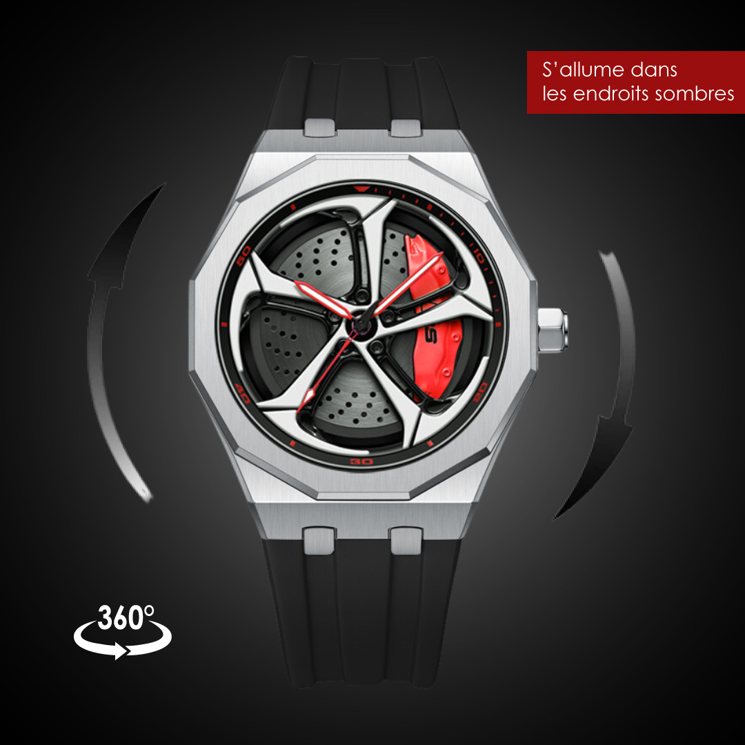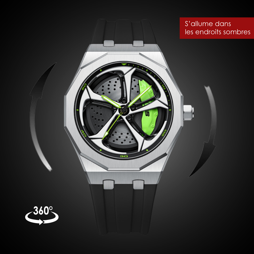 Découvrez notre nouvelle OMNIS RS6 en édition sport ! La montre Gt Kronos™ au design captivant fera battre le cœur de tous les amoureux du sport automobile. Elle mêle la perfection technique et le souci du détail pour créer un accessoire hors du commun. Cette montre utilisant la technologie de mouvement à quartz japonaise, est composée d'un verre minéral anti-rayures et d'un sous cadran représentant une jante de voiture sportive que vous saurez reconnaître.