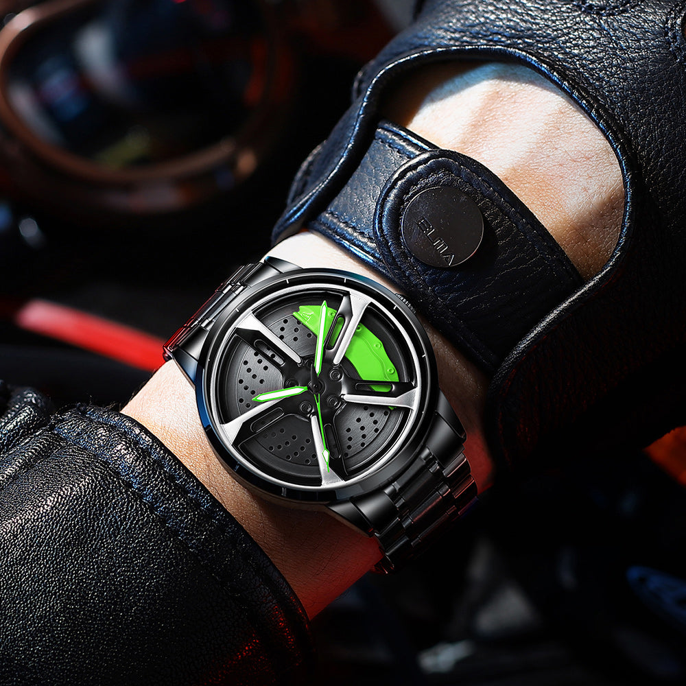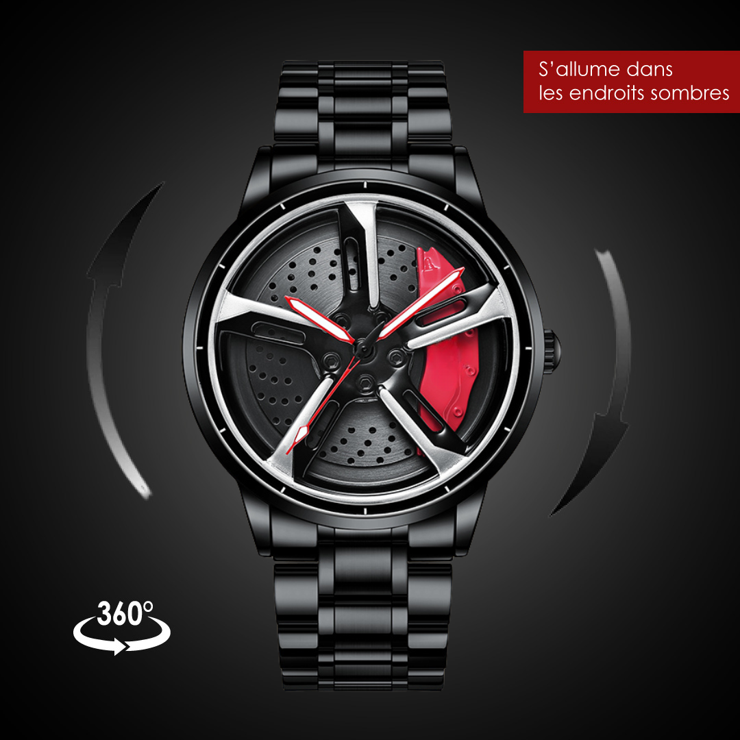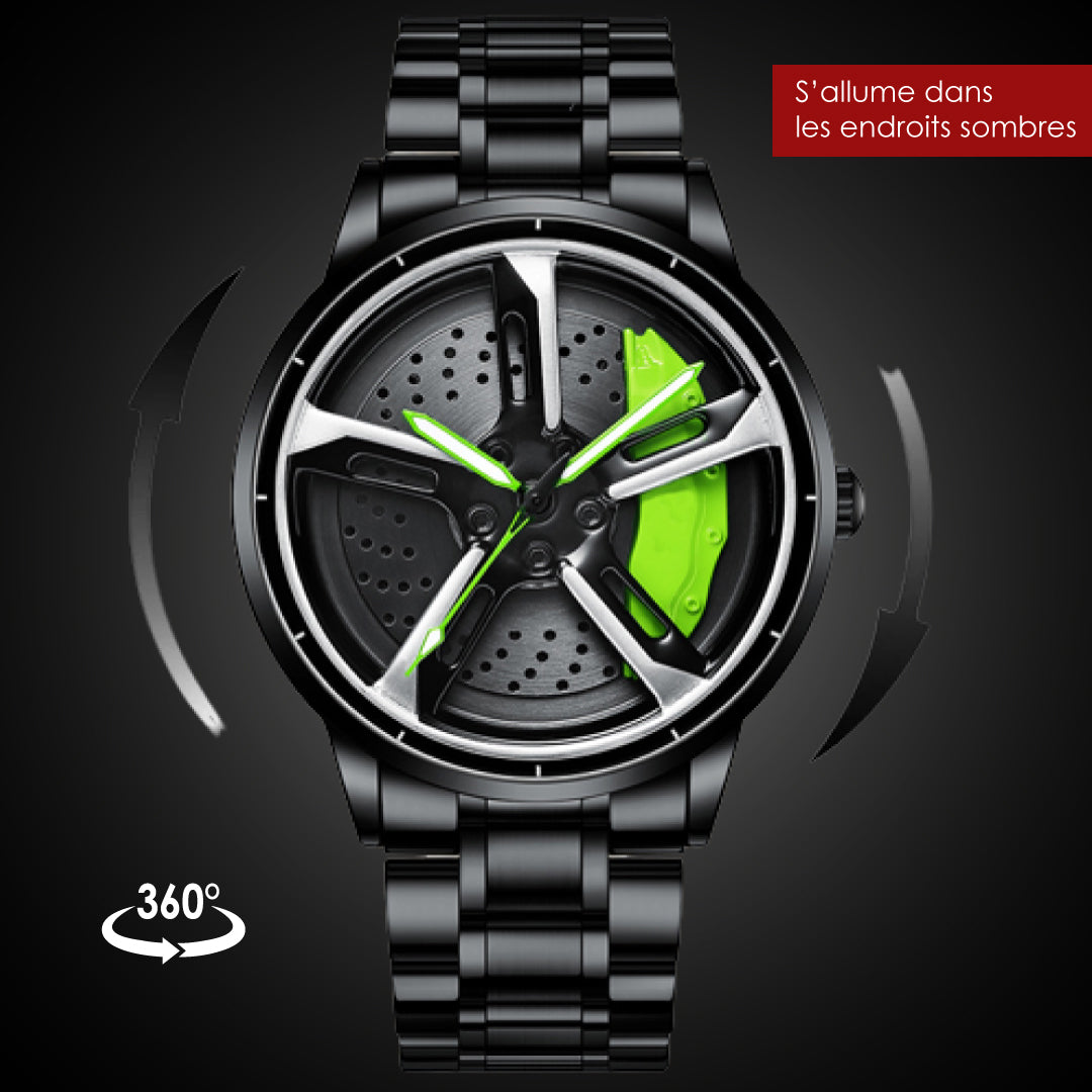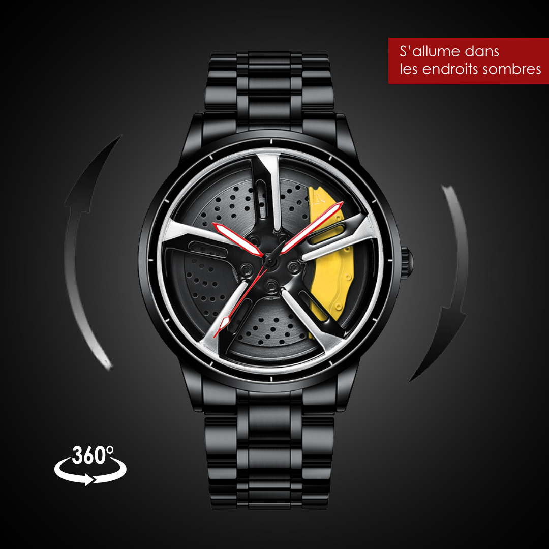 La montre Gt Kronos™ au design captivant fera battre le cœur de tous les amoureux du sport automobile. Elle mêle la perfection technique et le souci du détail pour créer un accessoire hors du commun. Cette montre utilisant la technologie de mouvement à quartz japonaise, est composée d'un verre minéral anti-rayures et d'un sous cadran représentant une jante de voiture sportive que vous saurez reconnaître.