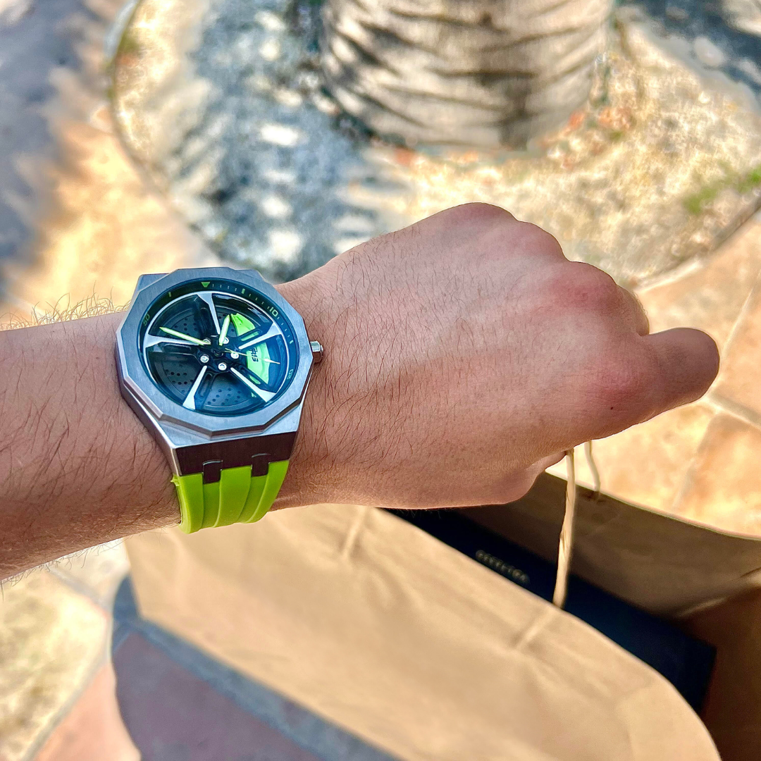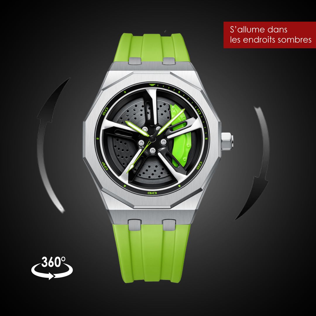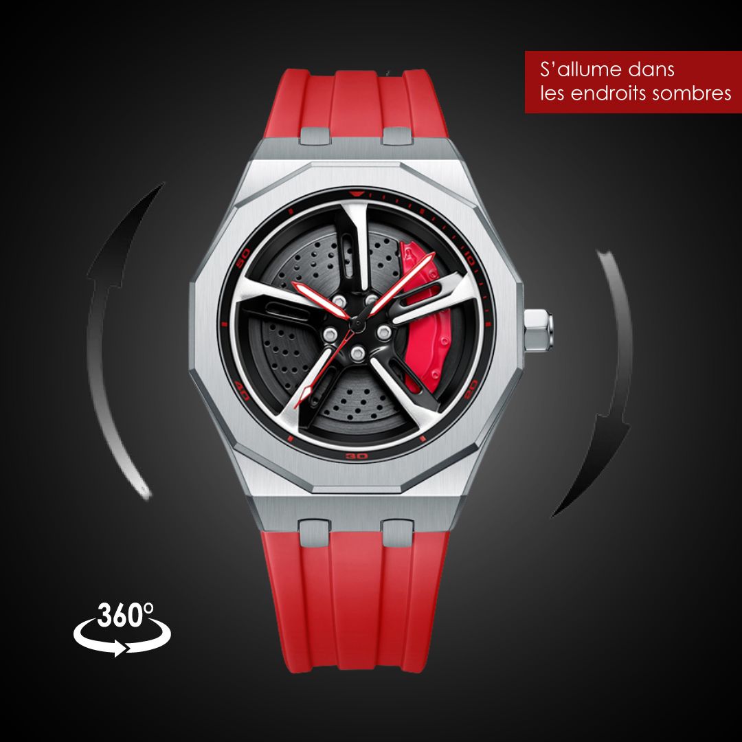 Découvrez notre nouvelle OMNIS RS7 en édition sport ! La montre Gt Kronos™ au design captivant fera battre le cœur de tous les amoureux du sport automobile. Elle mêle la perfection technique et le souci du détail pour créer un accessoire hors du commun. Cette montre utilisant la technologie de mouvement à quartz japonaise, est composée d'un verre minéral anti-rayures et d'un sous cadran représentant une jante de voiture sportive que vous saurez reconnaître.
