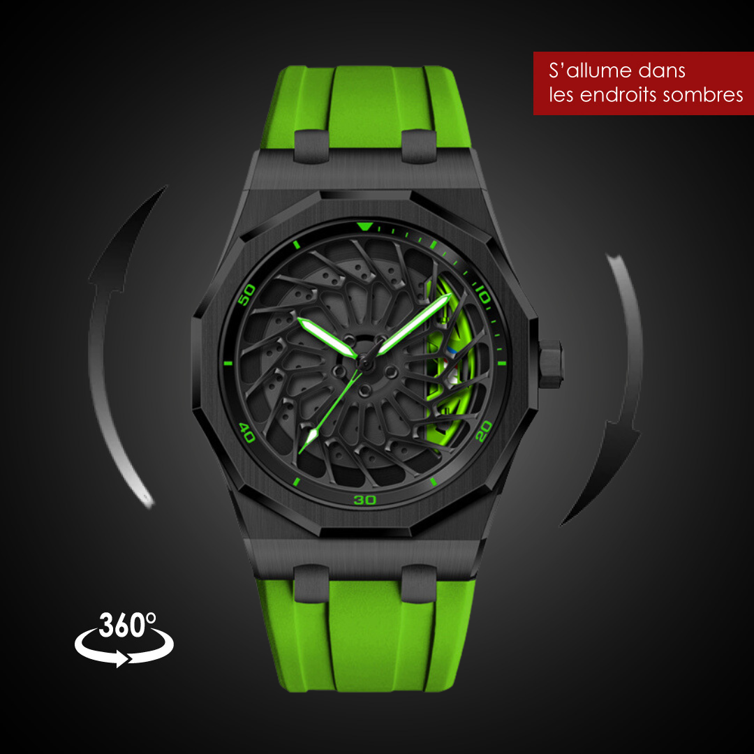 Découvrez notre nouvelle VAGNER 8i en Edition Sport ! La montre Gt Kronos™ au design captivant fera battre le cœur de tous les amoureux du sport automobile. Elle mêle la perfection technique et le souci du détail pour créer un accessoire hors du commun. Cette montre utilisant la technologie de mouvement à quartz japonaise, est composée d'un verre minéral anti-rayures et d'un sous cadran représentant une jante de voiture sportive que vous saurez reconnaître.