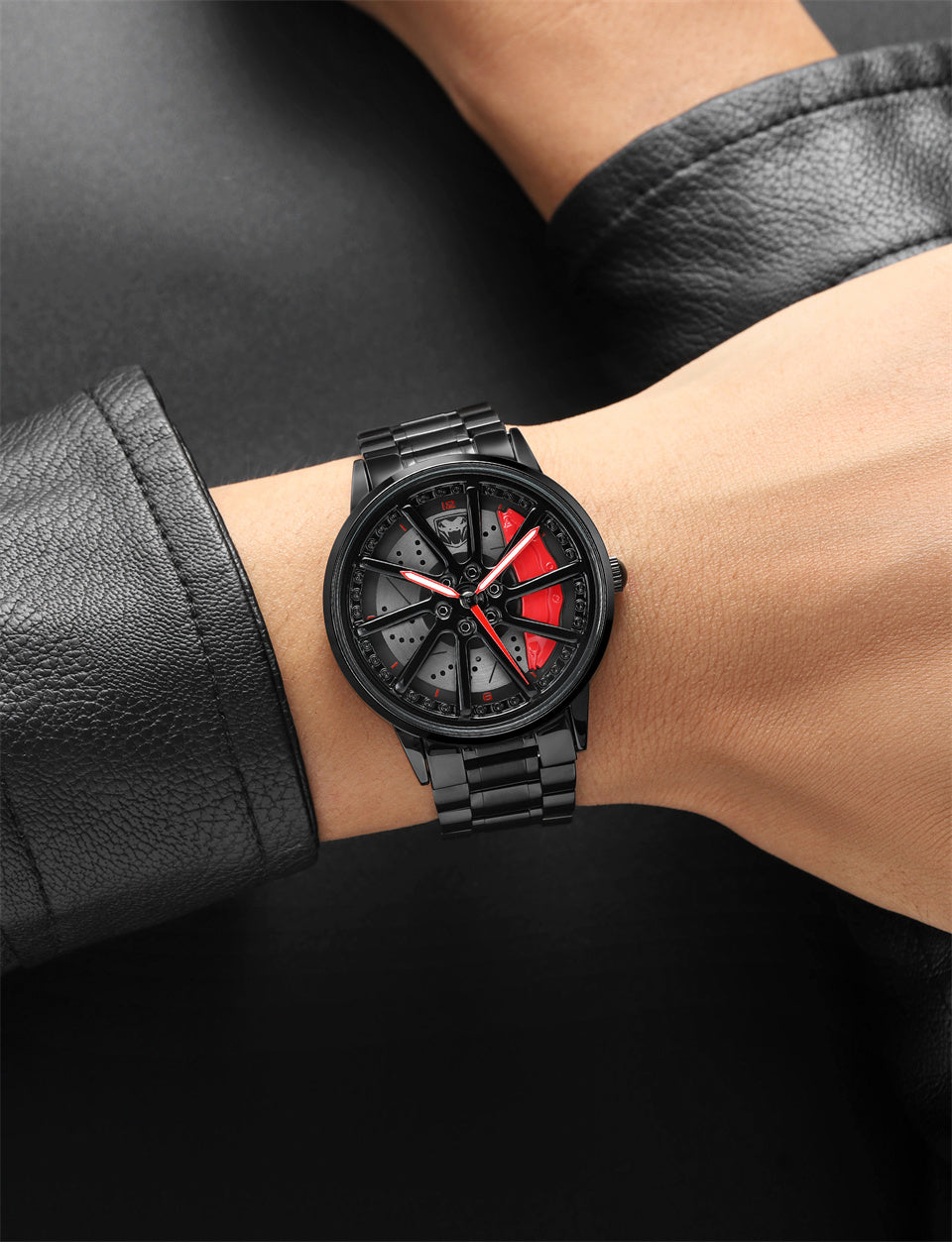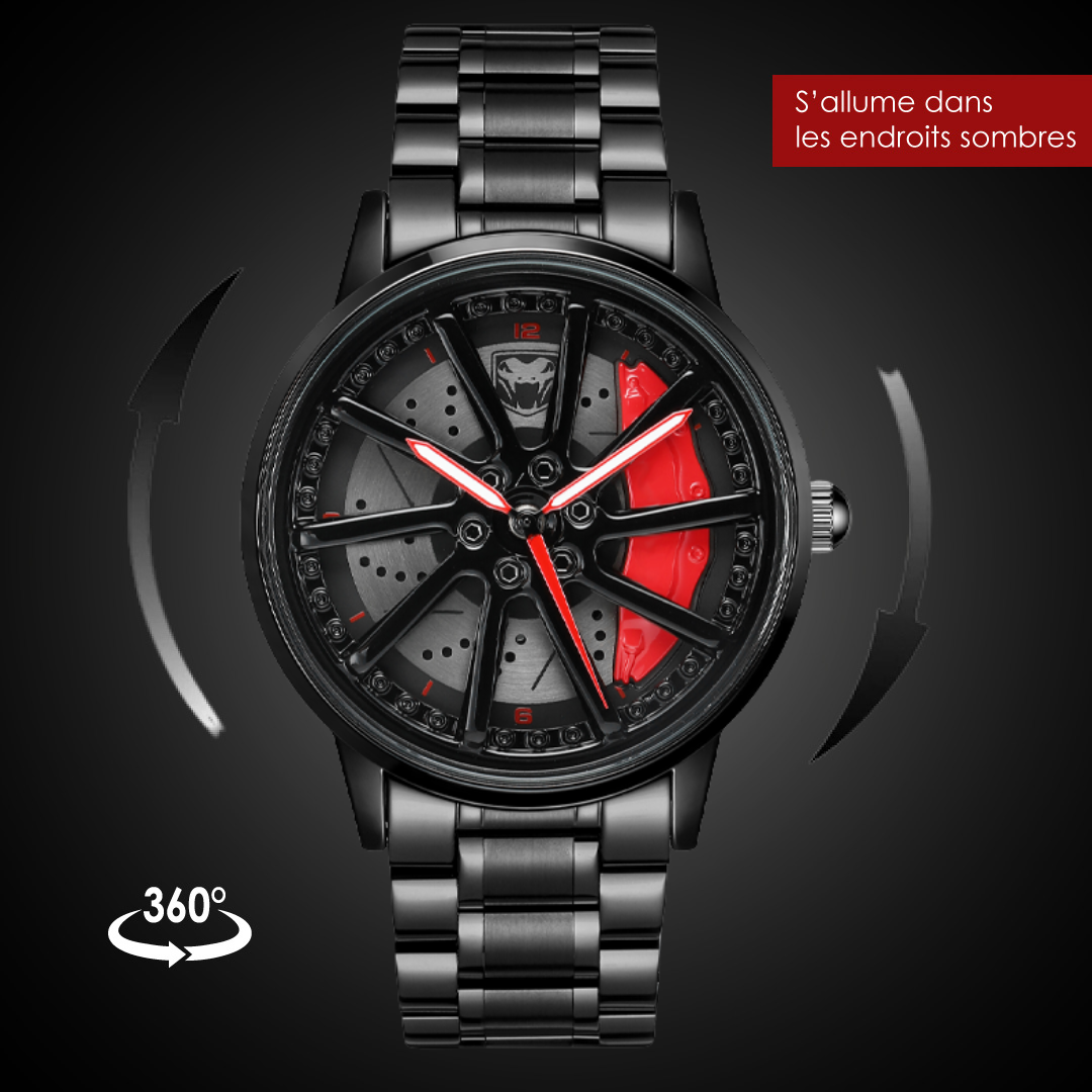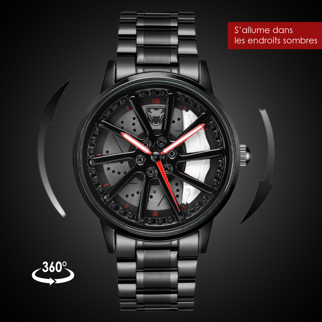 La montre Gt Kronos™ au design captivant fera battre le cœur de tous les amoureux du sport automobile. Elle mêle la perfection technique et le souci du détail pour créer un accessoire hors du commun. Cette montre utilisant la technologie de mouvement à quartz japonaise, est composée d'un verre minéral anti-rayures et d'un sous cadran représentant une jante de voiture sportive que vous saurez reconnaître.