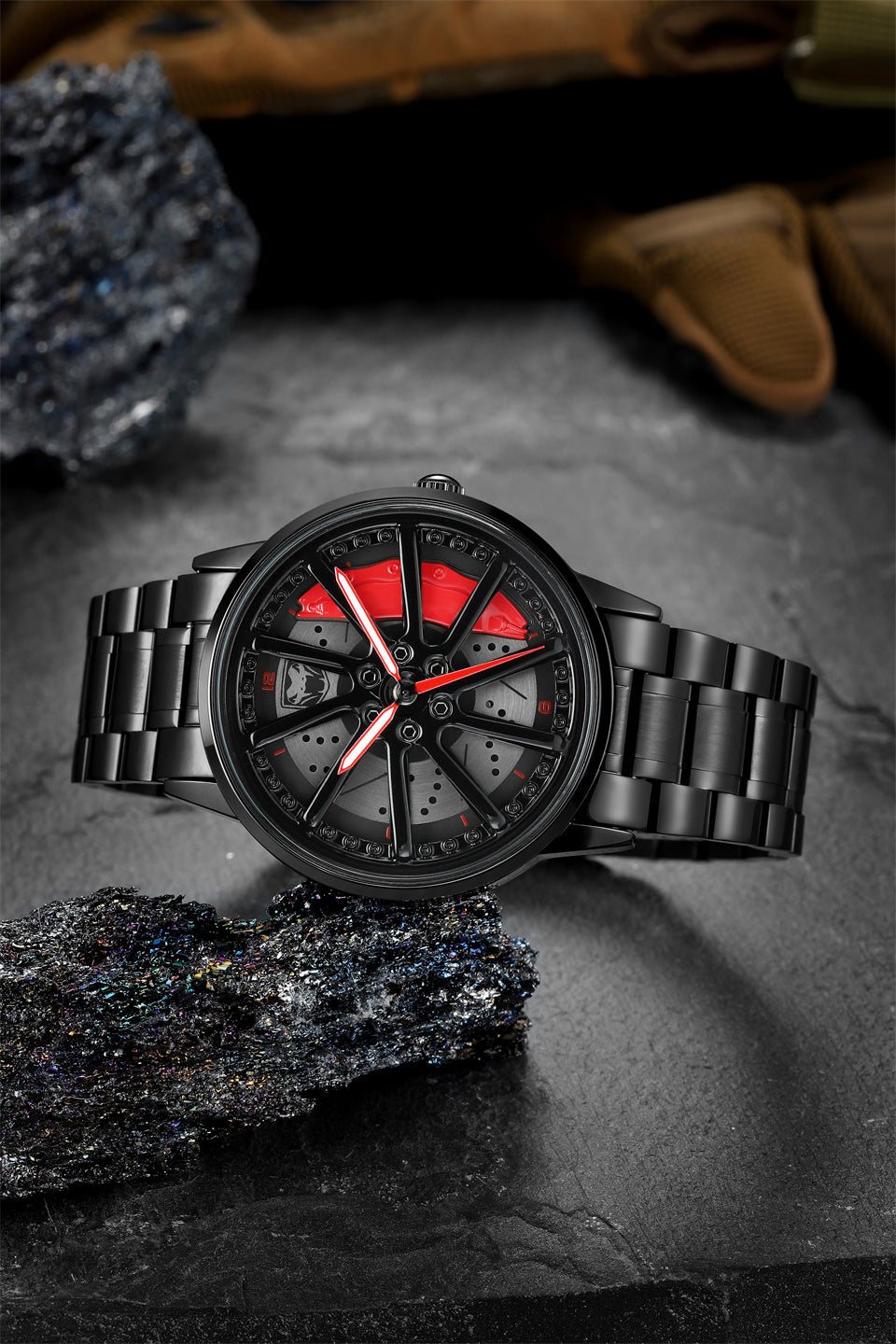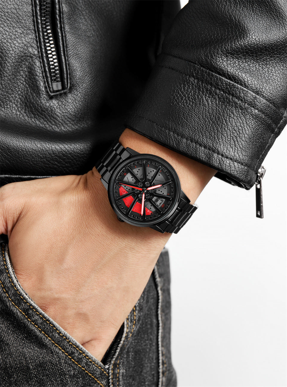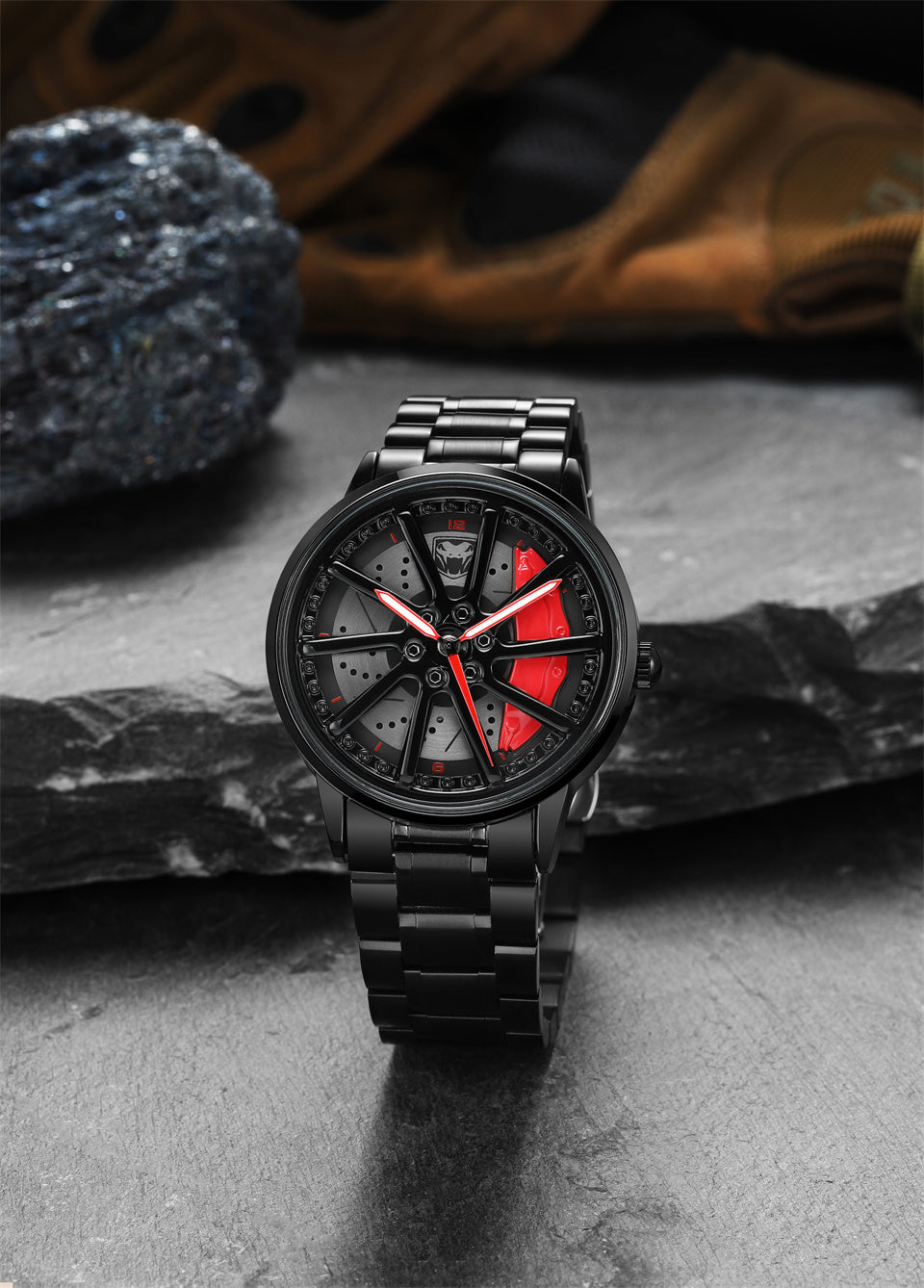 La montre Gt Kronos™ au design captivant fera battre le cœur de tous les amoureux du sport automobile. Elle mêle la perfection technique et le souci du détail pour créer un accessoire hors du commun. Cette montre utilisant la technologie de mouvement à quartz japonaise, est composée d'un verre minéral anti-rayures et d'un sous cadran représentant une jante de voiture sportive que vous saurez reconnaître.